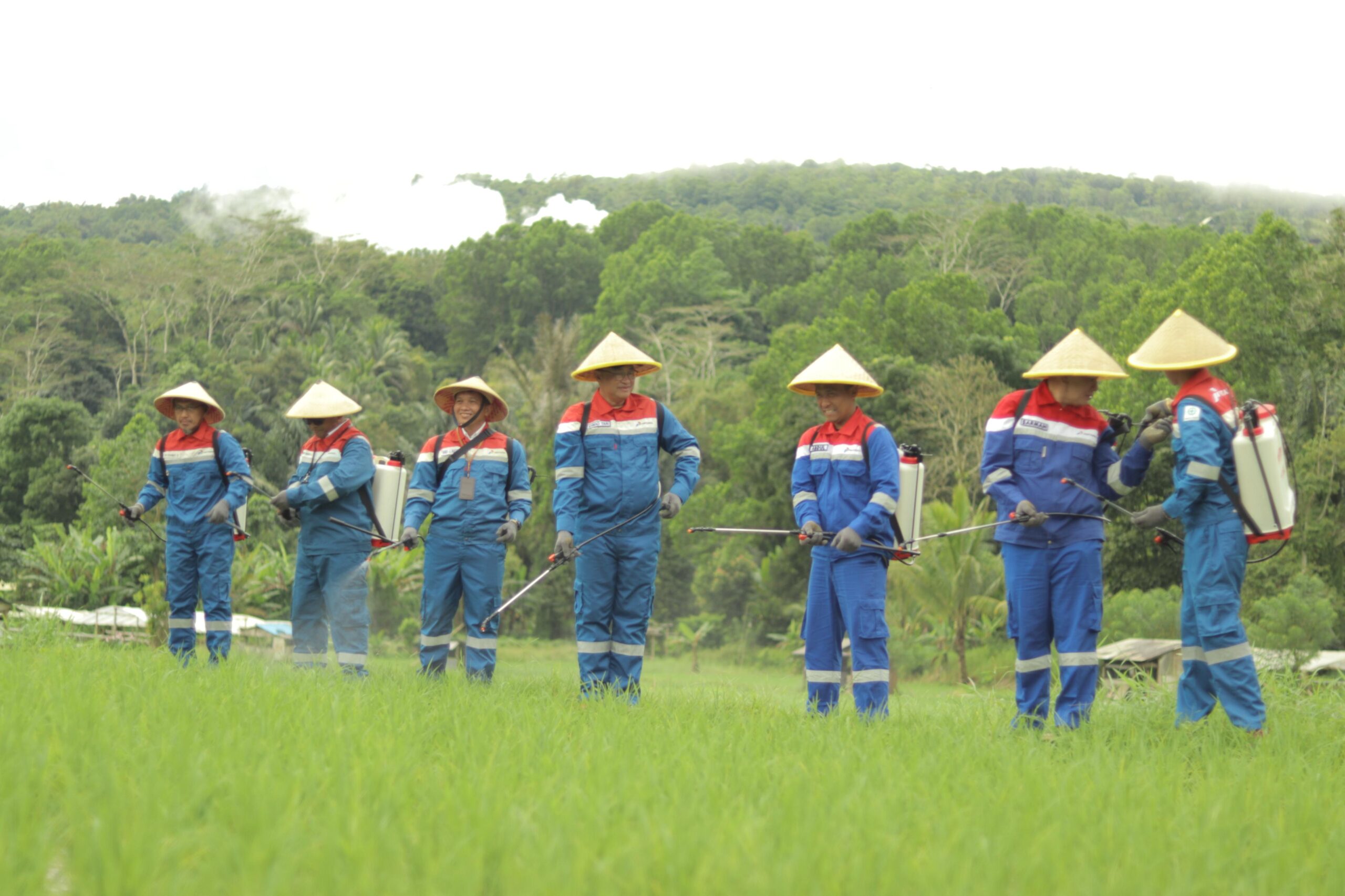 Penyemprotan perdana pupuk dilakukan oleh jajaran direksi dan komisaris PGE, termasuk Komisaris Utama Sarman Simanjorang, Komisaris Independen Abdul Musawir Yahya, Direktur Operasi Ahmad Yani, serta General Manager PGE Area Lahendong Novi Purwono, bersama kelompok petani setempat.